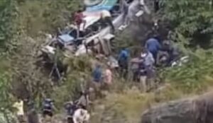 देहरादून। रानीखेत जा रही यात्रियों से भरी बस सुबह सवेरे अचानक और नियंत्रित होकर गहरी खाई में जा गिरी। यात्रियों की चीख पुकार की आवाज सुन आसपास के गांव के लोग मौके की ओर दौड़ पड़े। मामले की जानकारी स्थानीय पुलिस को दी गई सूचना पर रेस्क्यू टीम मौके पर पहुंची यात्रियों को निकालने का काम कर रही है बताया गया है कि अभी तक हादसे में आधा दर्जन से ज्यादा लोगों के मरने की जानकारी सामने आई है।