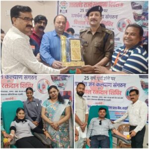 वेलांगीरी हिल्स हॉस्पिटल के डॉक्टर अर्पित सैनी एवं डॉक्टर नेहा सैनी के माध्यम से यहां पर सभी छात्र एवं छात्राओं की स्वास्थ्य जांच का भी आयोजन किया गया है,साथ ही स्वैच्छिक रक्तदान शिविर में मूल रूप से मदर टेरेसा ब्लड बैंक सभी कर्मचारी एवं संचालकों का अहम सहयोग रहा।कार्यक्रम में अतिथि के रूप में एसपी देहात चंद्रशेखर सुयाल ने उपस्थित हो सभी छात्रों का उत्साहवर्दन किया तथा शैक्षिक रक्तदाताओं को संबोधन किया।कार्यक्रम में पहुंचे संस्था के संरक्षक व फोनिक्स यूनिवर्सिटी के चेयरमैन इंजी०चैरब जैन ने भी छात्रों को रक्तदान से होने वाले लाभ के बारे में अवगत कराया,वहीं संस्था की संरक्षिका व समाजसेविका पूजा गुप्ता ने भी रक्तदान शिविर में उपस्थित रहकर छात्रों के द्वारा रक्तदान करने के लिए प्रेरित किया।संस्था संरक्षक अनिल नारनौली रक्तदान शिविर आदि में विशेष सहयोग कन्हैयालाल पॉलिटेक्निक के प्रधानाचार्य वाईके गोयल का विशेष सहयोग रहा।रक्तदान शिविर में वेलांगीरी हिल्स हॉस्पिटल के माध्यम से डॉक्टर अर्पित सैनी एमबीबीएस एमडी के नेतृत्व में शुगर बीपी थायराइड पेट दर्द,छाती के रोग,दिमाग एवं नसों की भी जान छात्र-छात्राओं एवं अन्य लोगों की की गई स्वास्थ्य जांच में डॉक्टर अरविंद सैनी ने स्वयं नेतृत्व करते हुए और उनकी टीम ने भी बहुत सहयोग किया।शिविर में आज 85 यूनिट रक्त वीरों ने किया।रक्तदान करने वालों में सरवन सैनी,संजीव सैनी,राजीव गुप्ता,संजय चाचड़ा,राजकुमार सैनी,नमन ठाकुर,शिवम सैनी,अतर सिंह राणा,राजकुमार सैनी,आयुष चौहान,मोहित गुप्ता, मोहित गुप्ता,रोहित कुमार,शुभम गोयल,धनंजय त्यागी,रतन अग्रवाल,सौरव कुमार,जसप्रीत शर्मा,दिव्या सिंघानिया,ऋषिका सैनी,मोहित सक्सेना,पीयूष चौधरी,आर्य पंवार, अभिषेक सैनी,संचित कुमार,जागृत शर्मा,गीतांश,साहिल अली,आलम,शेर सिंह शरण,यश राणा,आदित्य कुमार,निर्भय कुमार,सूर्यांश आयुष सैनी आदि मौजूद रहे।इस अवसर पर संस्था अध्यक्ष नरेश यादव ने सभी रक्तवीरों एवं सहयोगियों का आभार प्रकट किया और साथ ही बताया संस्था द्वारा सात नवंबर को उत्तराखंड रजत जयंती वर्ष के प्लस में पौधारोपण कार्यक्रम भी किया जा रहा है,जो आदर्श नगर में होगा संस्थान जनहित के कार्य लगातार करती रहेगी।संस्था की ओर से व्यवस्था में रहे संजीव सैनी सह महामंत्री,सचिन शर्मा,मंत्री अनूप बंसल,अंकुर त्यागी,रक्तदान प्रभारी संदीप यादव,शैलेश बंसल,आयुष वर्मा,गजेन्द्र शर्मा,वरिष्ठ उपाध्याय रतन लाल अग्रवाल,कन्हैयालाल पॉलिटेक्निक कॉलेज से एनएसएस प्रभारी मनोज सैनी,कुलदीप त्यागी,विकास गौतम,विपिन जैन, बबीता यादव आदि मौजूद रहे।